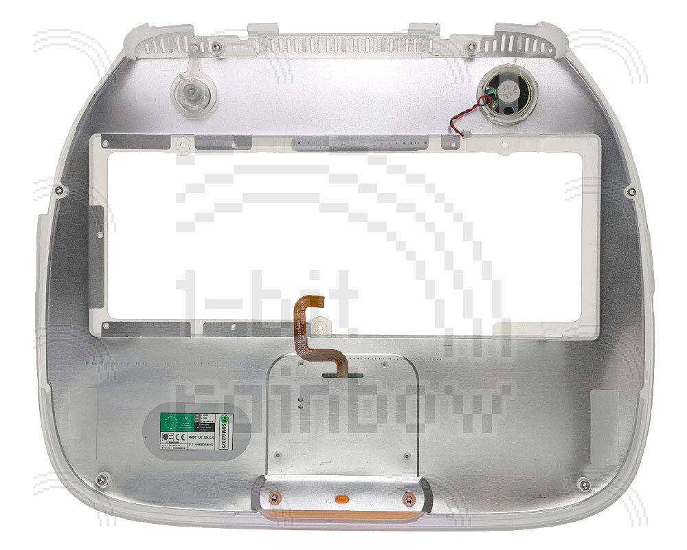 Original Apple, fully tested top case from a tangerine original iBook G3 Clamshell including trackpad and trackpad flex cable. This original range uses more transparent plastic than the latter FireWire ranges although they are functionally interchangeable.