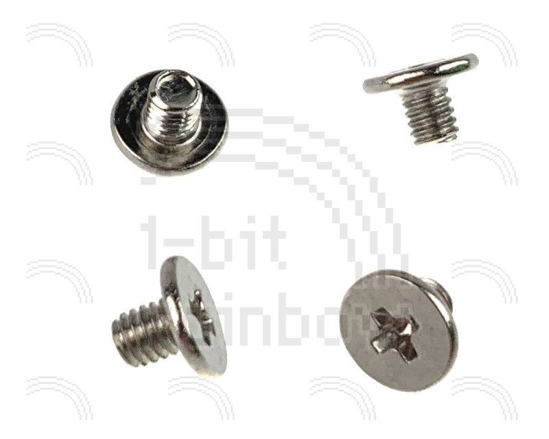 4 x original Apple Philips 3.6mm internal display screws for all the iBook G3 Clamshell ranges. Four secure the LCD panel (Samsung LCD only), four secure the top of the display chassis, three secure the inverter board, and two secure each of the antenna board and sleep light board.