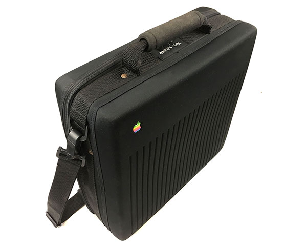 Original Apple rigid carry case designed specifically for the Macintosh Portable, the first ever battery powered portable Apple computer. The heavy duty case has a large internal compartment to store the power supply. It has a Macintosh Portable embroidered label under the handle. The Macintosh Portable was discontinued in 1991 and this case is a collectible piece of Apple history. Portable not included.
