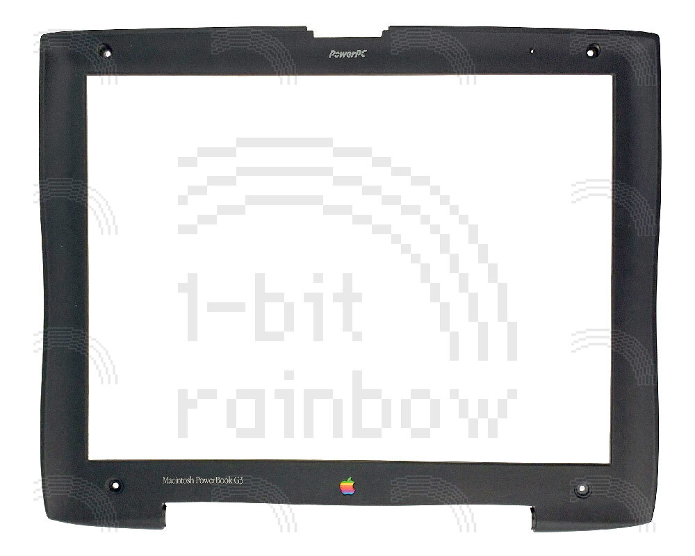 Display bezel for the 13.3" display models of Wallstreet PowerBook G3. On this model, the lid catch is a separate part.