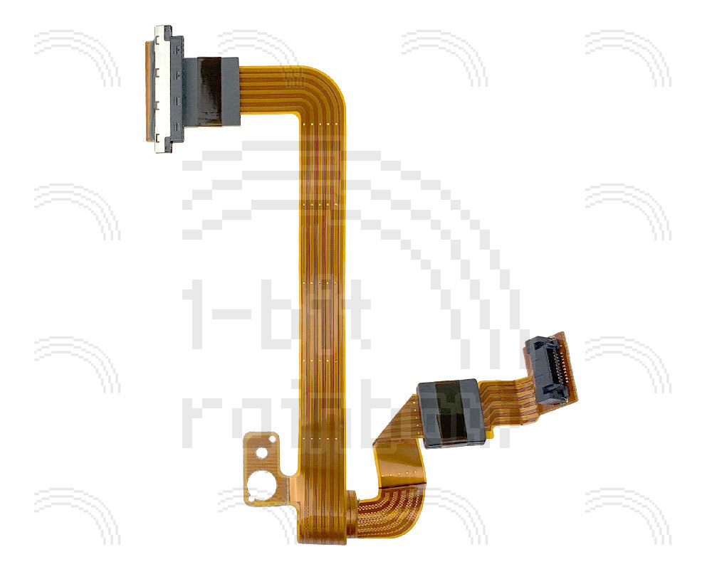 LCD data (LVDS) flex cable for the 13.3" active matrix (TFT) display models of Wallstreet PowerBook G3. This cable connects to the logic board, passes around the left hand hinge and then connects to the back of the LCD panel within the lid. It will NOT work with the 12" logic board.
