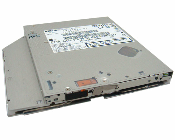 Used tested TEAC DV-W28SL slot loading 12.5mm ATA superdrive. The iBook G4 range use a manufacturer specific bezel which clips onto the front of the optical drive and so this drive can only be used in an iBook G4 if it is replacing another TEAC drive.