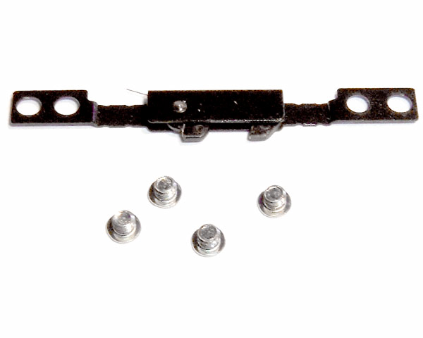 Complete magnetically operated, sprung lid catch assembly for all models of 15" Aluminium PowerBook G4. This assembly includes the four securing screws.