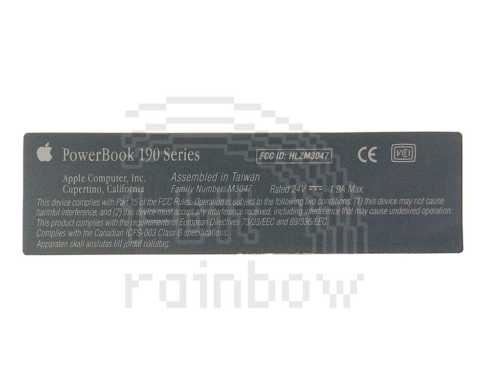 Original Apple PowerBook 190 Series plastic bottom case model sticker. The original adhesive may not be sufficient to hold this in place and it may need additional adhesive.