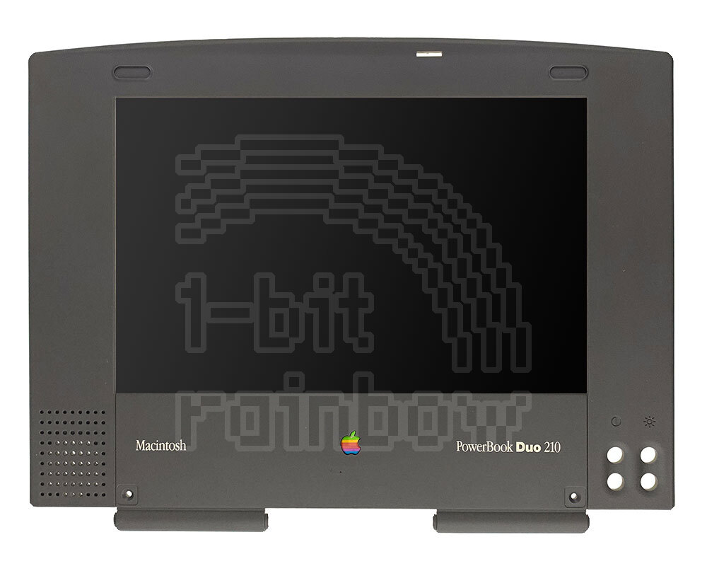 Original Apple, fully tested Sharp FSTN (passive matrix) 9-inch greyscale LCD panel and display bezel for the PowerBook Duo 210 providing 16 shades of grey at 640x400 pixels.