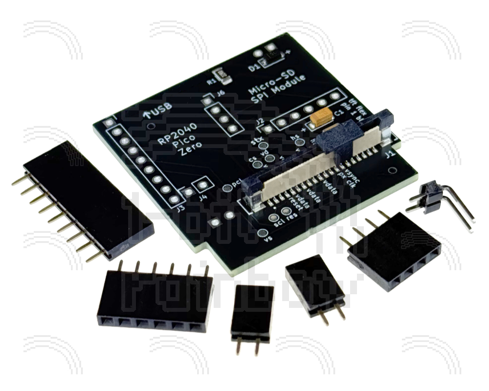 The Pico Zero, SD card reader and LCD panel are not included. The board may vary from the photo as revisions are made.